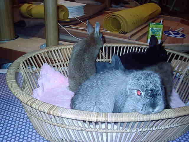 みんな元気いっぱいでした。スタジオのうらで出番を待つうさちゃんたち。