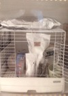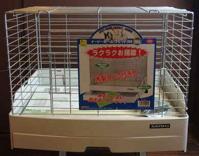 (ケージ本体、大粒フード、国産イタリアンライグラス、三角トイレ、フラットボトル、お皿、トイレのひのき砂、おやつ数点)