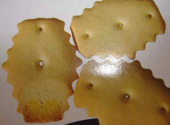 パインペーストをビスケットではさんで硬めに焼き上げました。