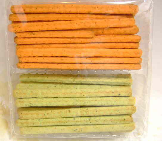 手で持って与えるふれあいビスケット。緑黄色野菜です。