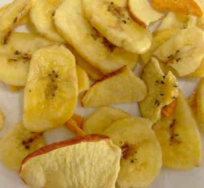 果実(リンゴ、人参、キウイ、バナナ、干しぶどう等)のドライフードです。副食として主食に混ぜて与えてください。 |